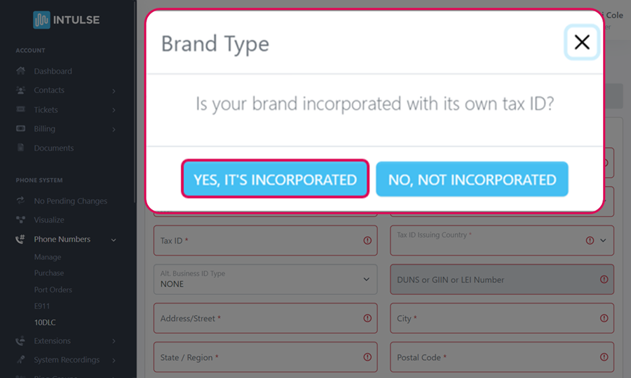 Is your brand incorporated with its own EIN? If yes, click "YES, ITS INCORPORATED.