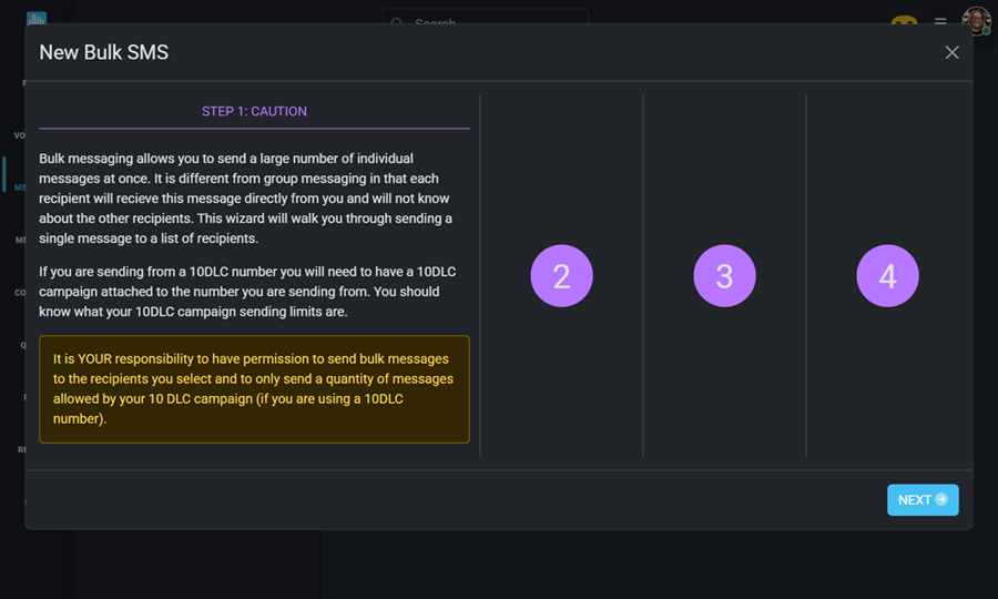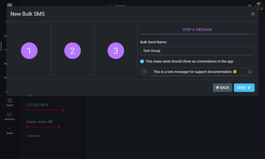 Our new Bulk SMS Wizard walks you through 4 quick and easy steps to create and send Bulk SMS messages.