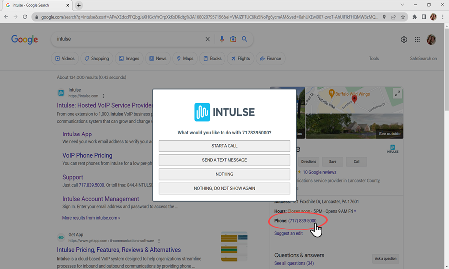 The Intulse Companion App is a browser extension that recognizes all phone numbers and presents them as hyperlinks, allowing Intulse users to click on the phone number and initiate calls directly from the web browser.
