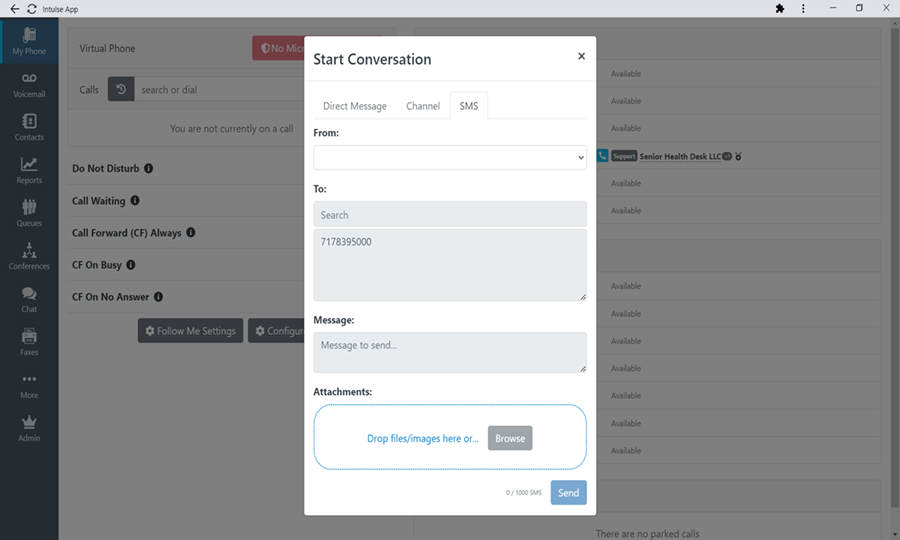 The extension will also allow you to send SMS texts directly from your Intulse App.