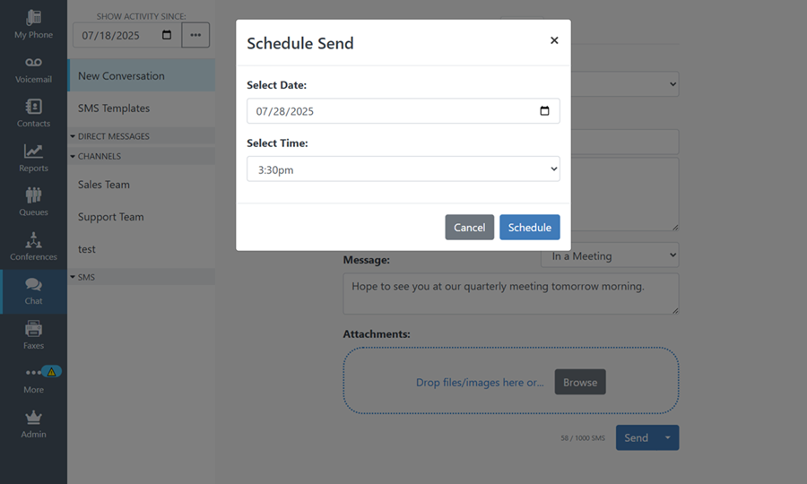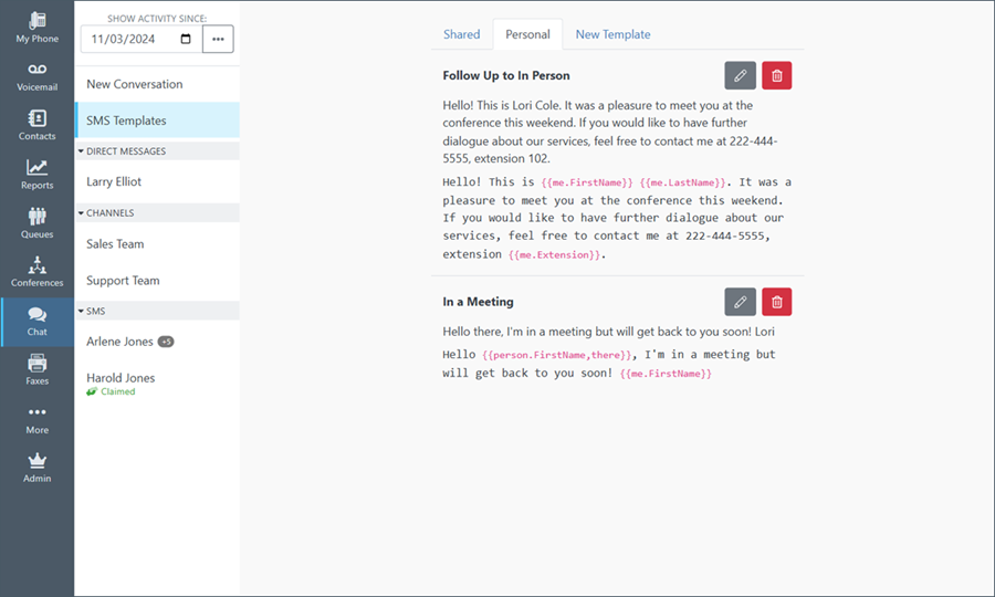 Texting Made Easy: Create templates for quick replies and schedule messages to send at a selected time.