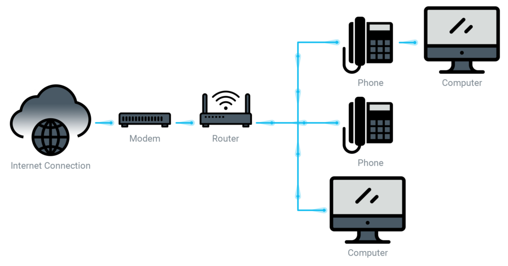 You’ll need a business or enterprise-grade router that provides common networking protocols like DHCP, NAT, DNS, and QoS. If you are a smaller business, Intulse can provide a router or recommend other routers that are very cost effective. Our technicians can let you know if the device you have is capable of working with Intulse, or if you need to replace it with equipment that will. If you require having a firewall, whether built-in or as a separate device, you may need additional help with setup and configuration for Intulse to pass through to the phones.
